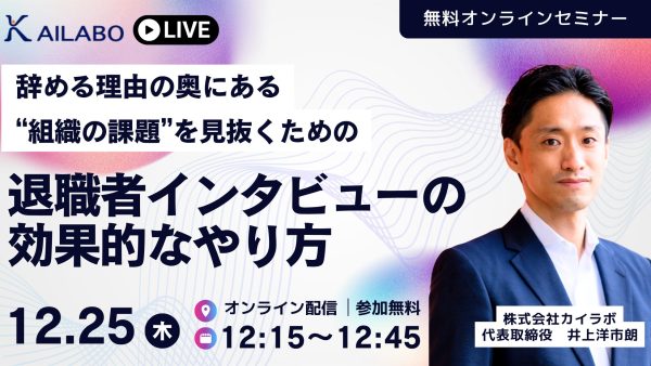 辞める理由の奥にある”組織の課題”を見抜く 退職者インタビューの効果的なやり方 12/25 12:15~...