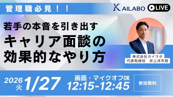 管理職必見 若手の本音を引き出す「キャリア面談」の効果的なやり方 1/27 12:15~12:45