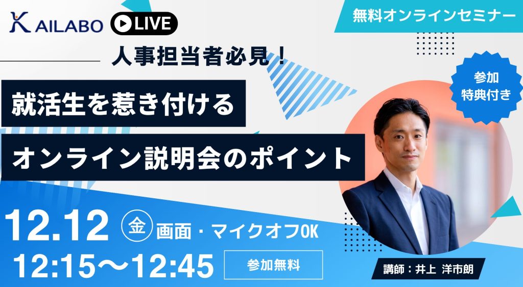 本セミナーでは、そんなオンライン説明会を“印象に残る時間”に変えるためのポイントを、事例を交えながらわかりやすく解説します。
