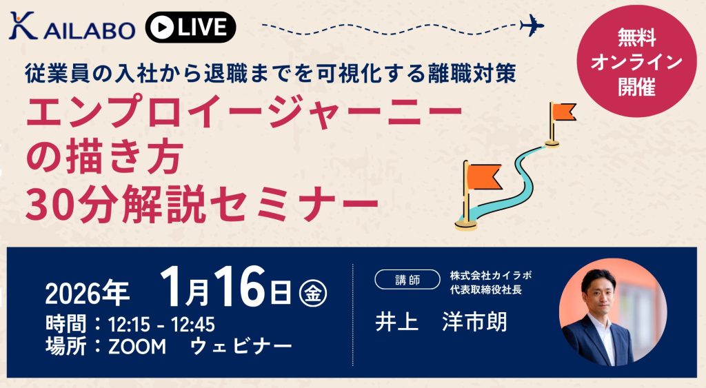 今回のセミナーではエンプロイージャーニーマップワークショップを開発し、ご提供しているカイラボ代表の井上が、エンプロイージャーニーをつくるときのコツをお伝えします。