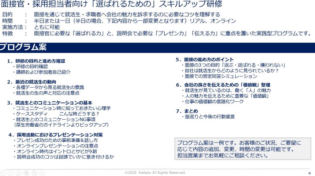 面接官・採用担当者向け研修カリキュラムはこちら