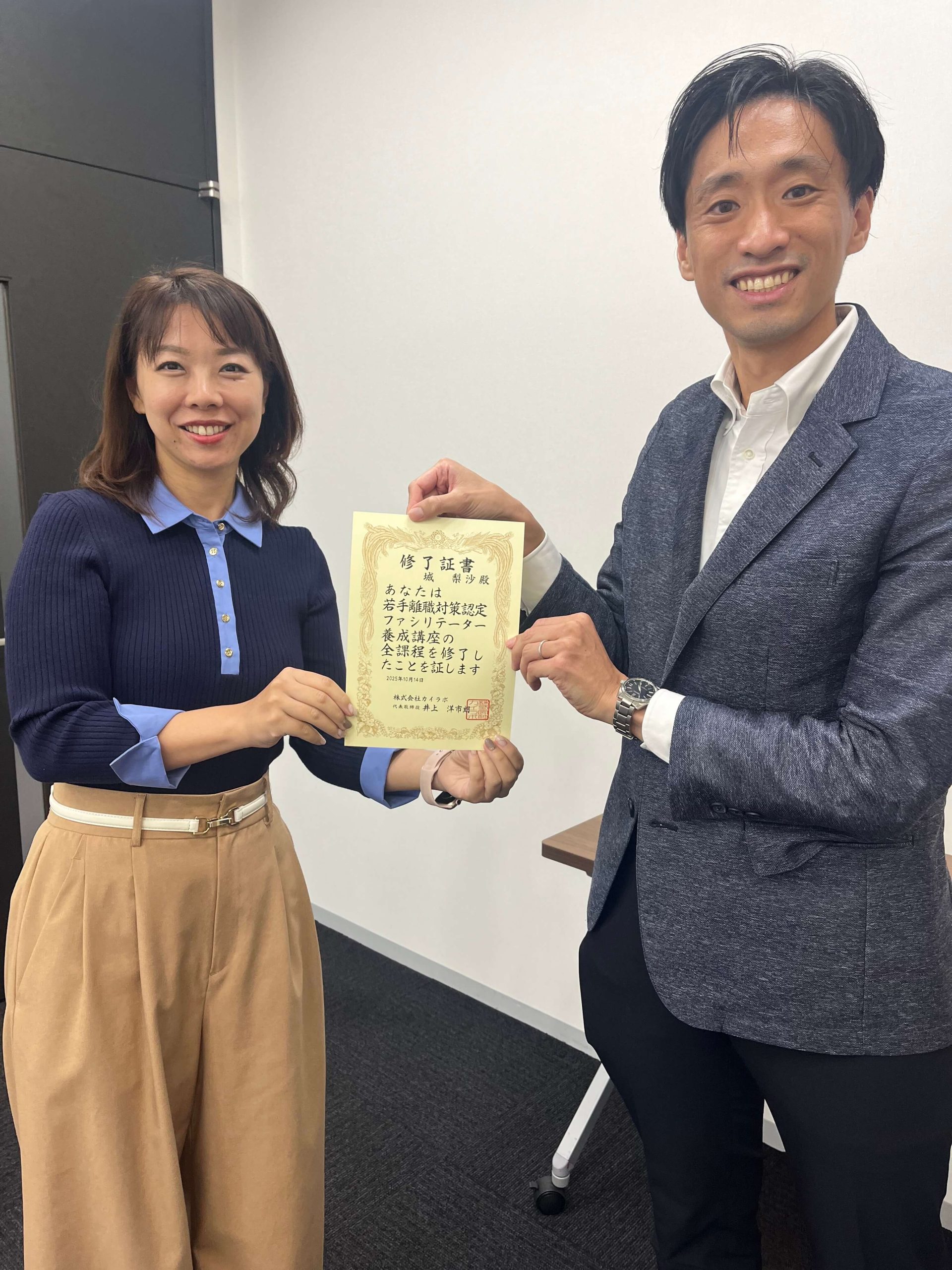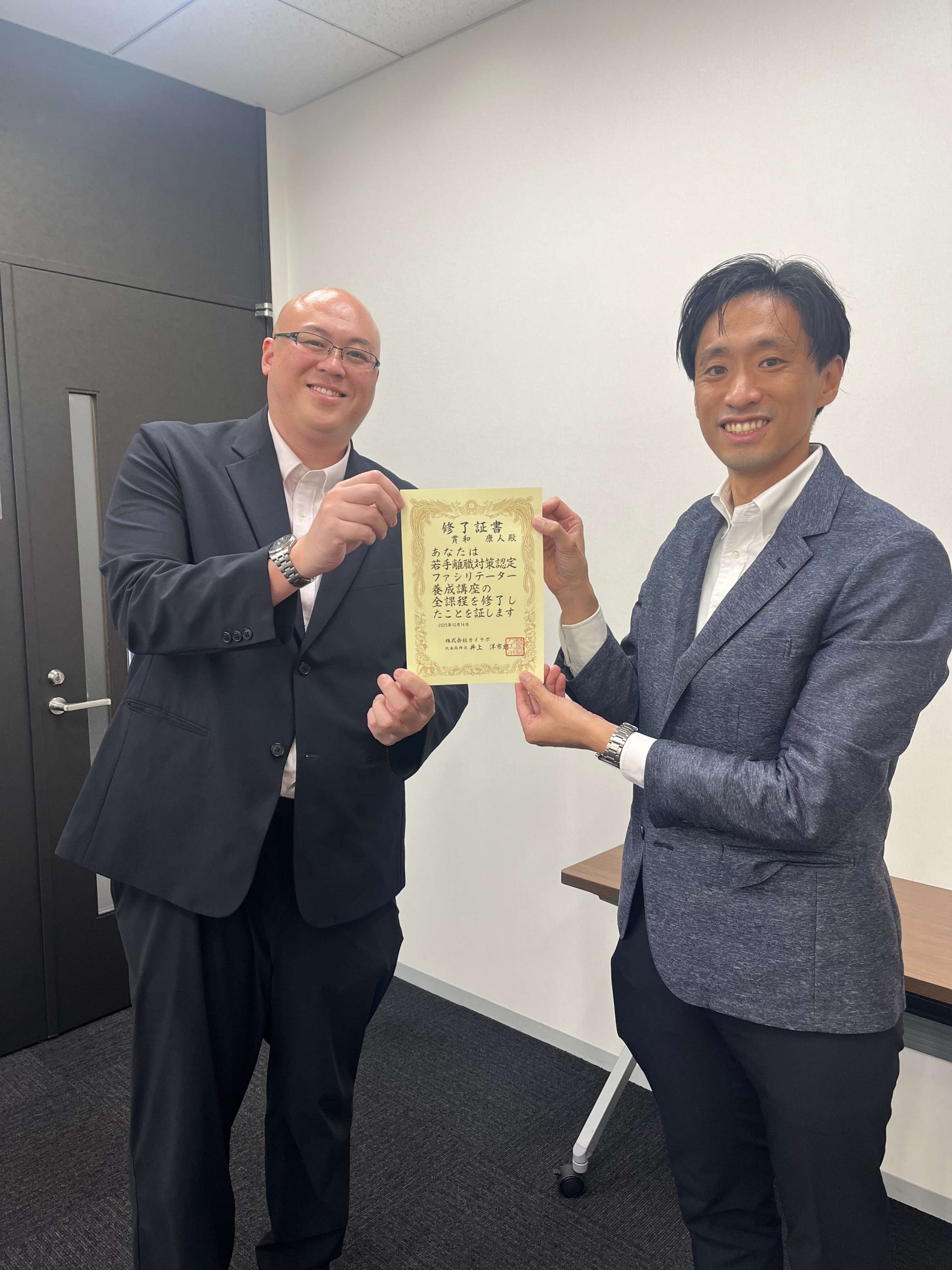 ①若手離職防止認定ファシリテーターを名乗り、名刺などに記載いただけます。